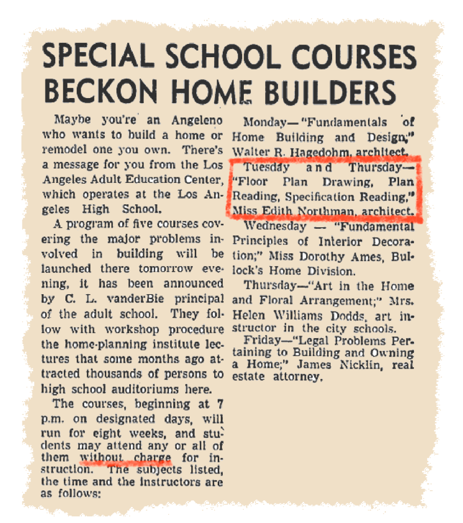 And that’s just what she did. She got a degree in architecture at USC and was licensed by 1931. Northman soon kickstarted a humble yet successful solo architecture practice with just one draftsman, bucking the odds of the economic depression while being a woman in a highly male profession.