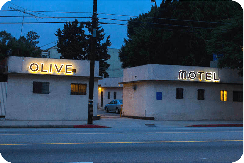 Back in the dog days of August 2015, I took an evening walk around the neighborhood to cool off. As I turned onto Sunset, the familiar neon glow of the Olive Motel beckoned me to to snap a photograph.